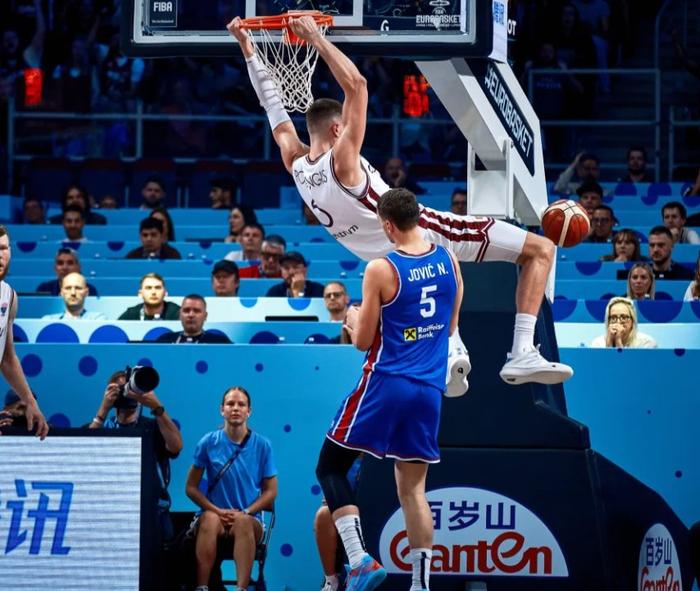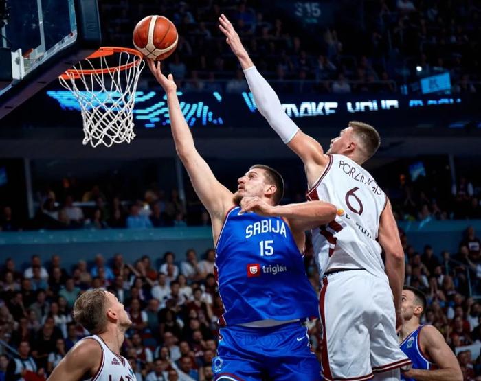 塞尔维亚84-80险胜拉脱维亚拿到三连胜,这场比赛是夺冠热门塞尔维亚首次受到一些阻击,拉脱维亚全队5人上双,一直跟塞尔维亚打得有来有回,好在塞尔维亚有全世界最强篮球手尼古拉-约基奇,约老师一人狂揽39+10+4帮助塞尔维亚涉险过关。这场比赛我想谈的是波尔津吉斯,此役他直接对位约基奇,结果让约基奇31分钟,26中15,三分4中1,罚球8中8,拿到39分10篮板...