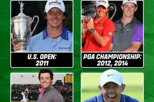 美国大师赛x1(2025)、美国公开赛x1(2011)、英国公开赛x1(2014)、PGA锦标赛x2(2012、2014)